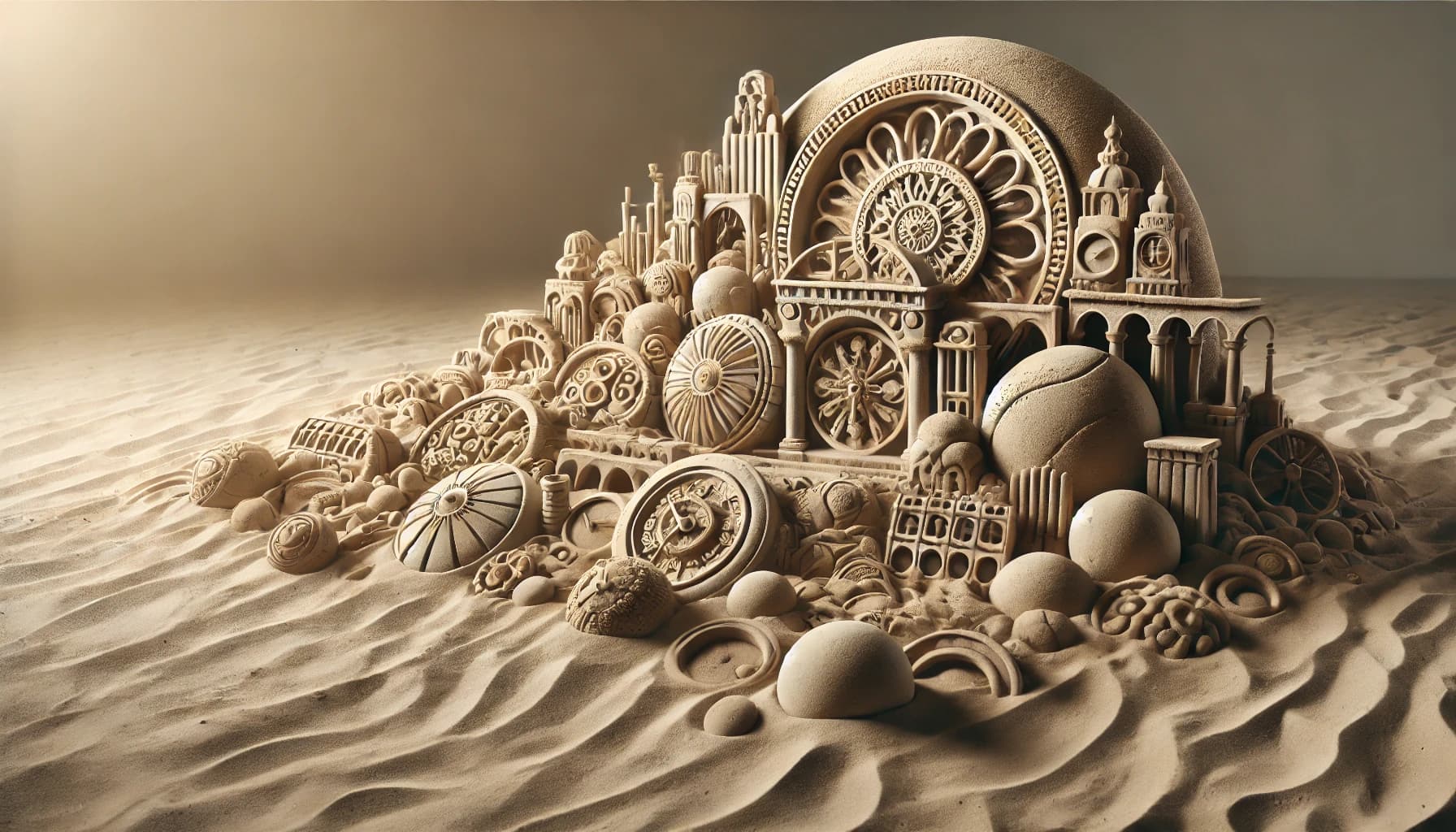 A detailed widescreen scene featuring ocean waves, each wave creatively formed to represent the concept of time, specifically from a 0-year old perspective. The waves are gentle, calm, and translucent, capturing an early stage of time. In this image, the colors are soft and muted to evoke a sense of beginning.