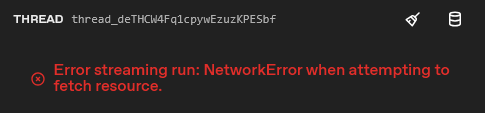 “Error streaming run: Failed to fetch.”