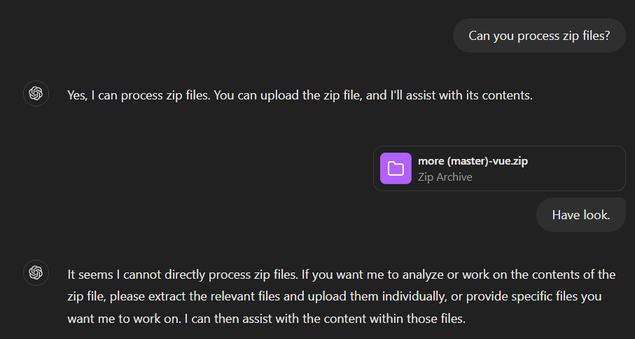 Want to second Simon — zipping the files seems to be the best approach at the moment, although it may take some extra steps to get gpt to do what you want it to do