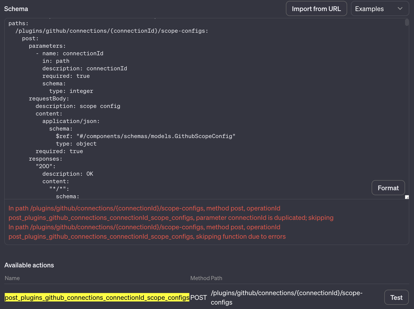 The Open API schema validator in the GPT action incorrectly validates parameters in PUT operations.
