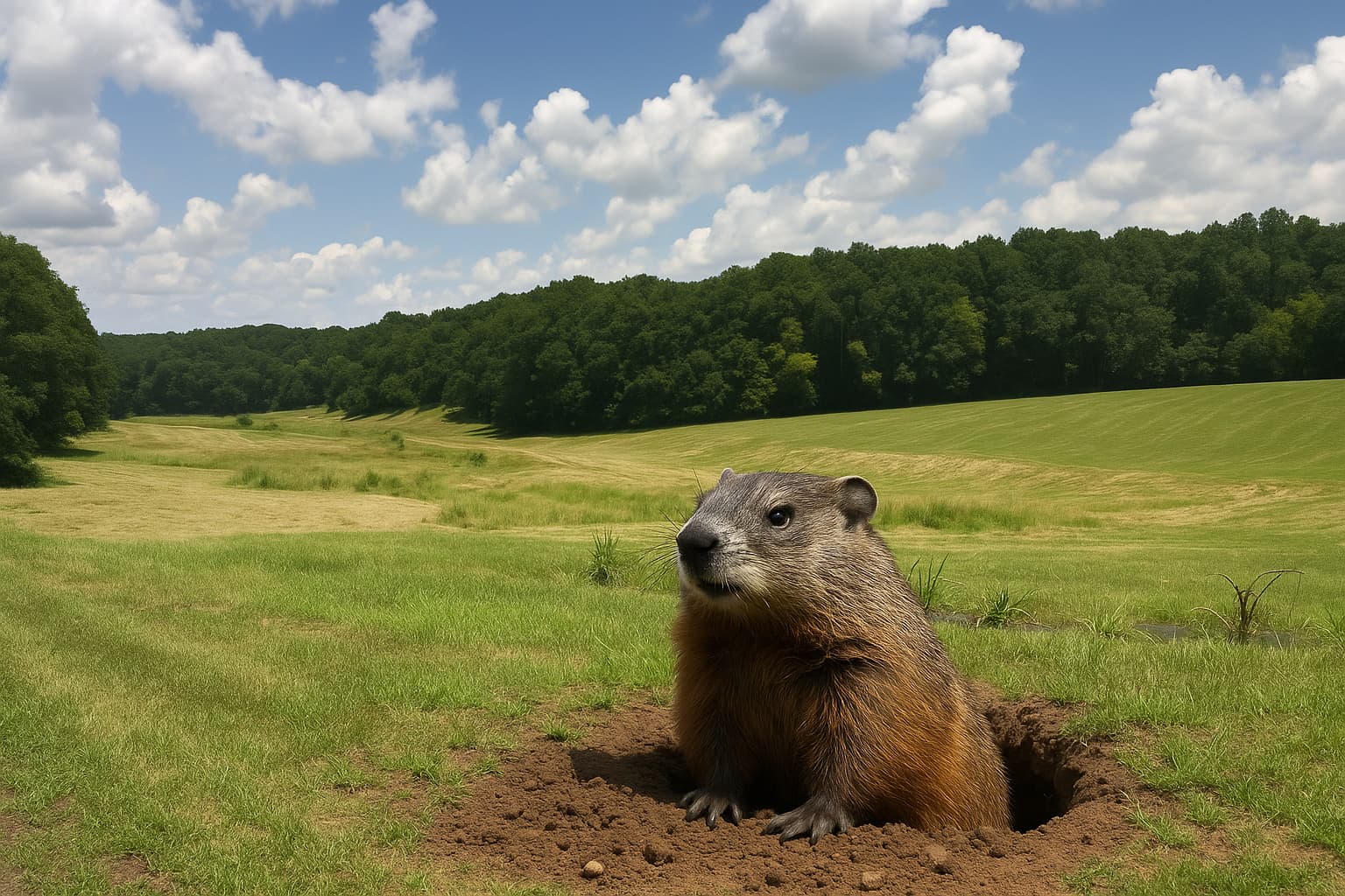 GPT Image-1: Modification adding a photo-realistic image of a ground hog coming out of a hole.